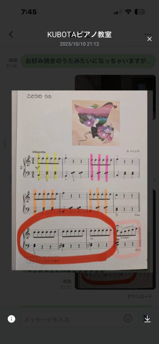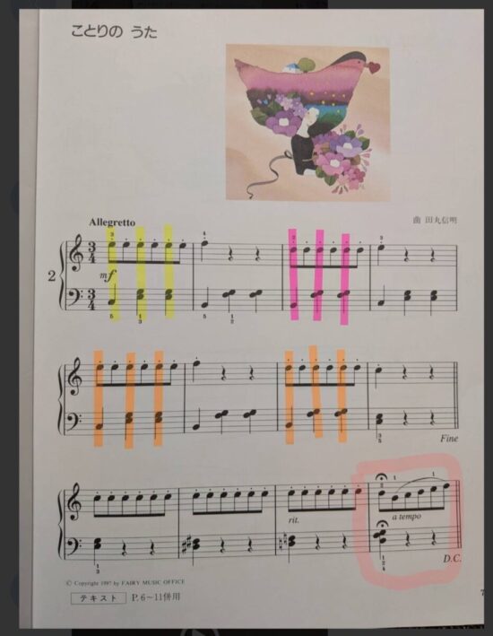 リズムが取りにくい箇所に言葉を当てはめるとすんなり弾きやすくなります。
