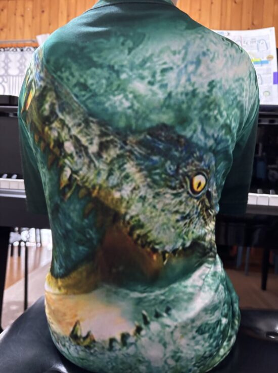 今週はJ君(小2)がカッコいいTシャツを着てきました。ワニ🐊です!!